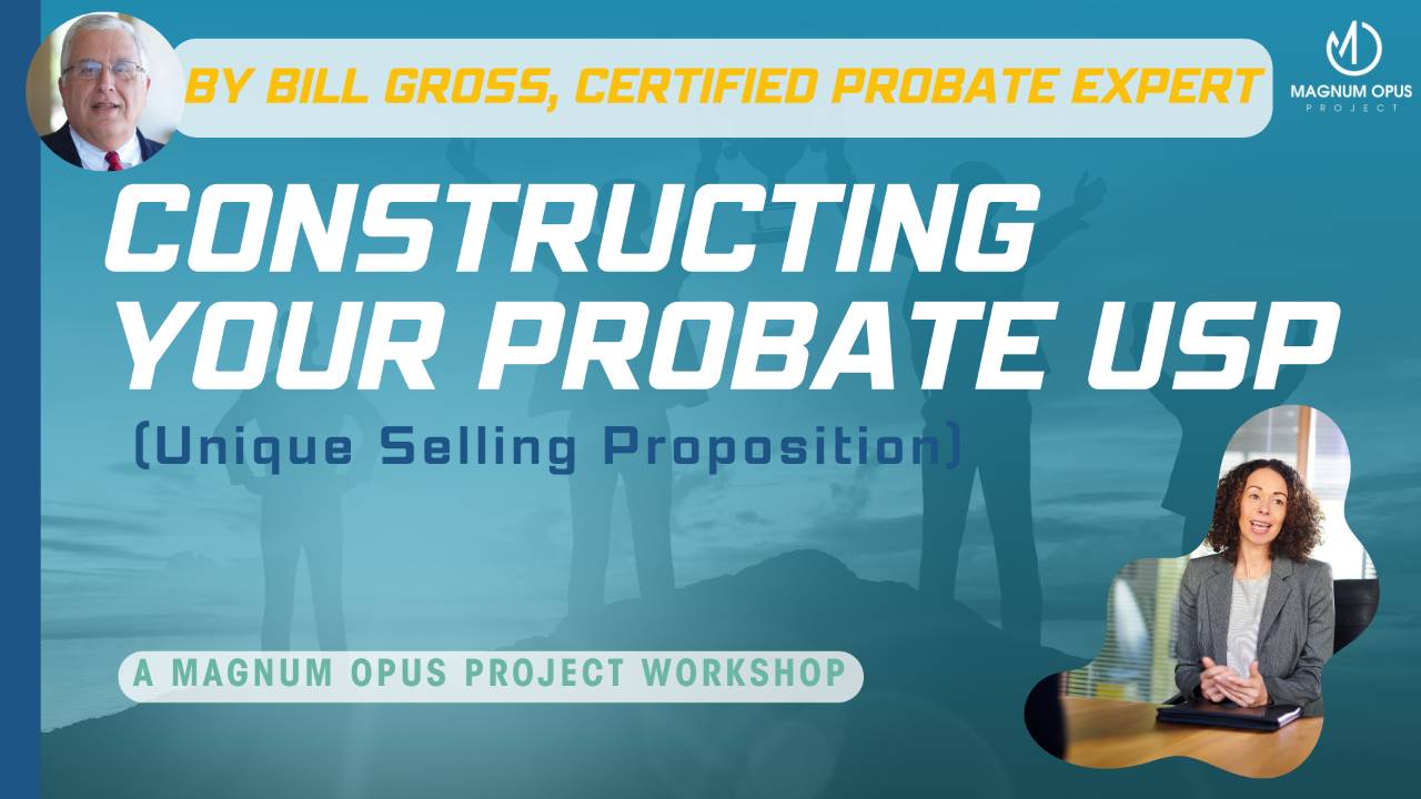 This 1.5 hour workshop led by Bill Gross teaches how to create your Unique Selling Proposition as a probate real estate professional.