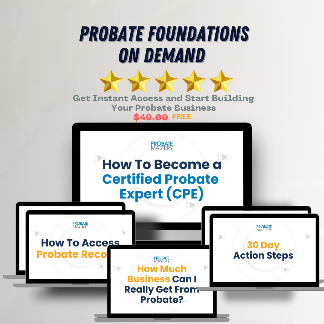 Are you ready to join the 5,000+ real estate professionals who’ve mastered probate and built thriving real estate pipelines?